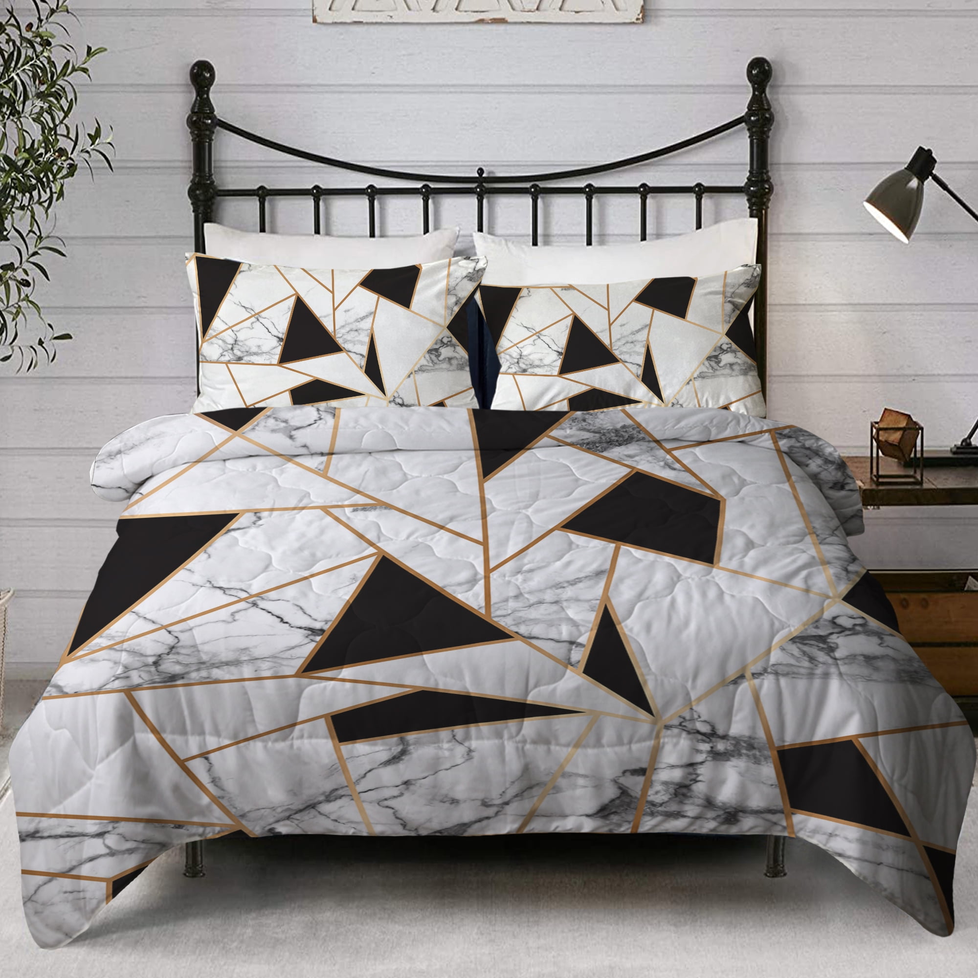 Arightex 3 Pieces Geometric Marble Bedding Comforter Sham Set Queen Bed Black And White Bedroom Decor For Teens Men Boys Girls Adults Women Walmart Com Walmart Com
