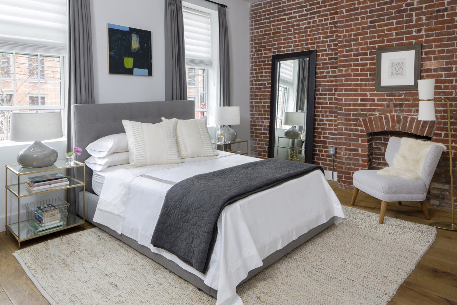 Transitional enclosed medium tone wood floor and brown floor family room photo in New York with white walls a standard fireplace a stone fireplace and a media wall. The trick to creating a lovely bedroom when square footage is limited is to make smart use of the space you do have keep furnishings scaled to the room and most of all boldly show off your decorating chops. The 500 ultra-luxe duvet will not matter if your space is poorly planned.