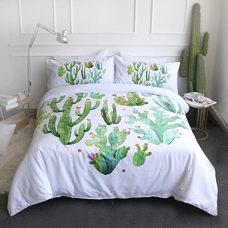 Amazon Com Ozinci Plant Bedding Set Cactus Themed Full Queen Size 1 Duvet Cover 2 Pillow Case Girls Bed Set Green 3 Pcs Home Kitchen