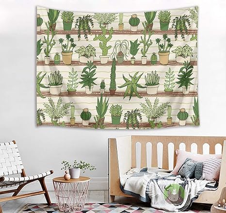 Amazon Com Hvest Cactus Tapestry Tropical Desert Succulent Plants On Wood Shelf Wall Hanging Blanket Watercolor Botanical Tapestries For Bedroom Living Room Dorm Decor 80wx60h Inches Home Kitchen