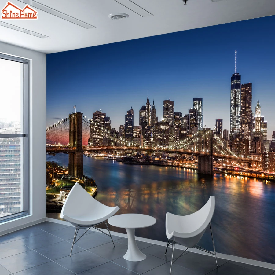 Shinehome Wallpapers For Walls 3 D Living Room Bedroom Wallpaper Nyc Skyline City Building Background Cafe Wall Paper Covering Wallpapers Aliexpress