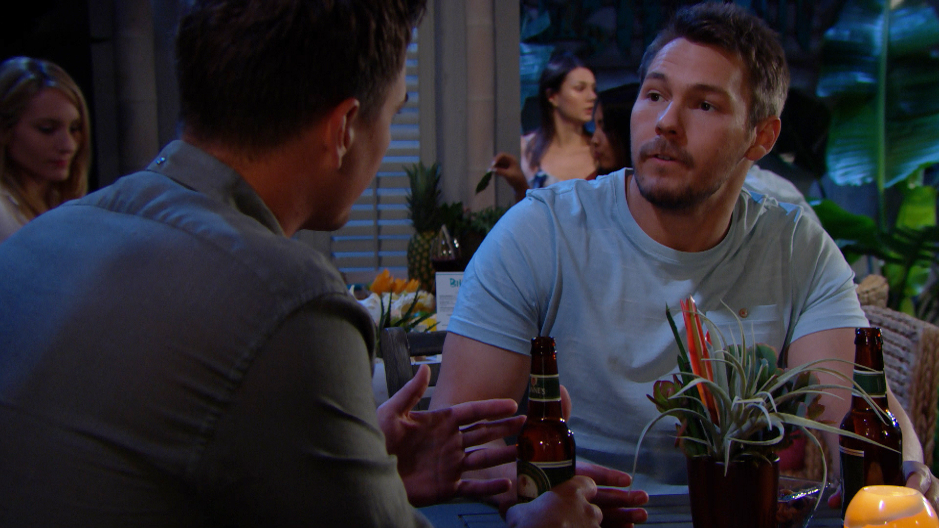 Several characters from each of the two shows have crossed. Bill and Justin blow up over Justins failed attempt at a hostile takeover. Brooke comforts Hope who still feels incomplete without her baby Beth.