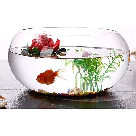 Amazon Co Jp Aquarium Glass Creative Round Fish Tank Living Room Small Goldfish Pot Office Desktop Mini Aquarium Glass Vase 10 0 Inches 25 Cm Pet Supplies